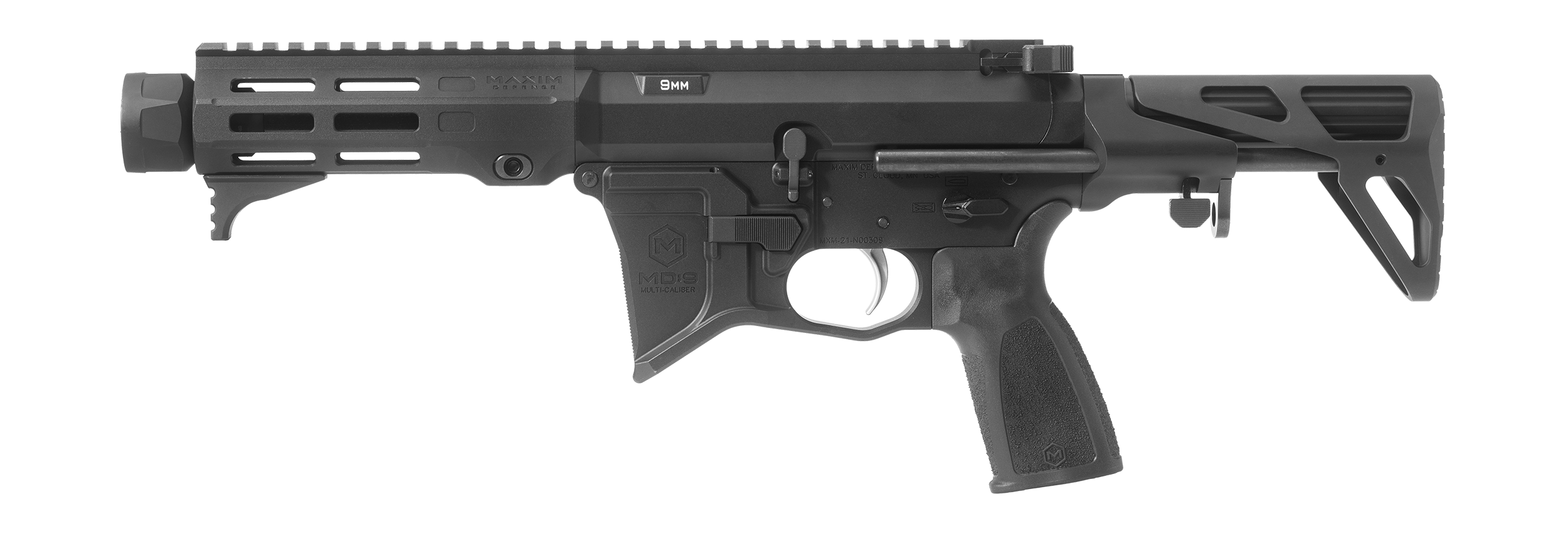 When you’re looking for Maxim Defense ingenuity in a new standard AR-9, the MD:9 is your answer. The MD:9 was engineered to fit the growing demand for cutting-edge AR9-style rifles for today’s Military and commercial market. Every MDX features our free-floating barrel with our custom handguard for increased comfort and versatility. These handguards provide a monolithic-like upper receiver platform and M-Slot compatibility.