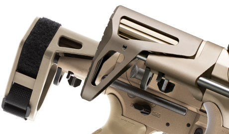 At the heart of the PDX™ is our patented SCW™ system—a 4" stock system with an integrated bolt carrier group and interchangeable buffer weights, giving you enhanced recoil control, faster follow-ups, and improved reliability across calibers. Out front, the PDX™ comes standard with the Maxim HATEBRAKE™ muzzle booster, installed under the handguard to reduce recoil, decrease flash signature, and redirect blast forward—ideal for use in close-quarters or suppressed environments.