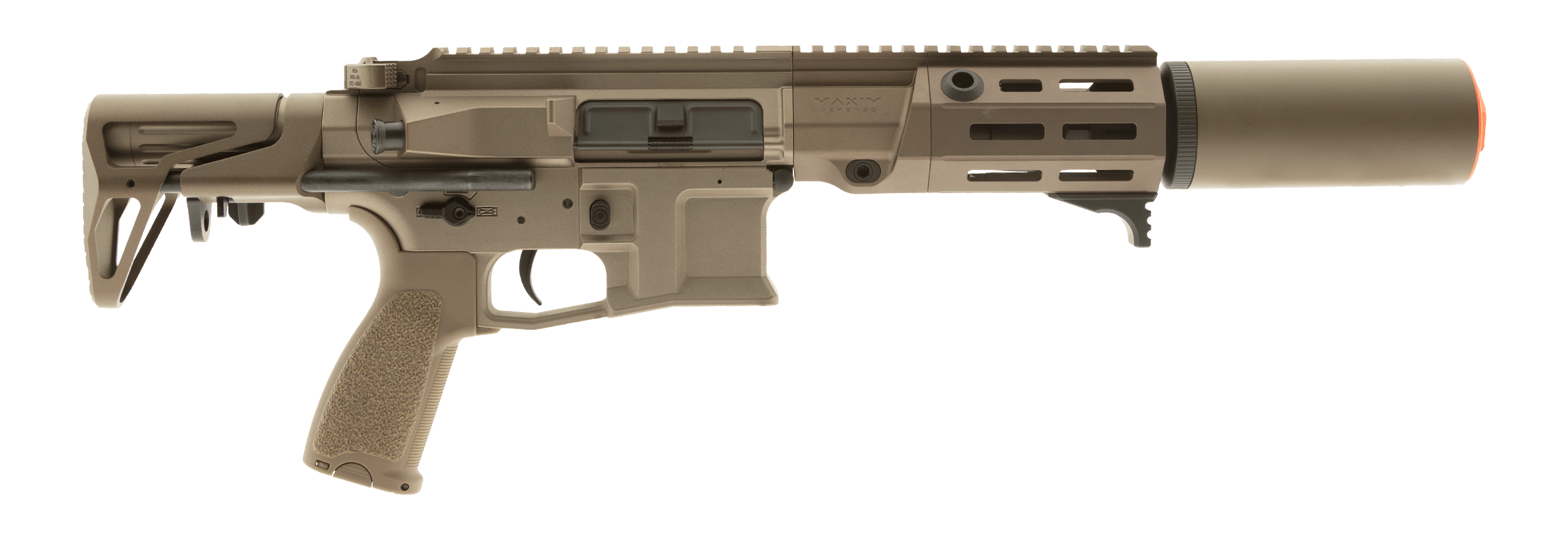 The Maxim Defense PDX-SD AEG Airsoft Rifle brings the compact dominance of the PDX-SD platform into the airsoft arena. Designed as a true 1:1 replica and manufactured by Vega Force Company, this AEG delivers realistic handling and modern internal performance in a CQB-optimized package.